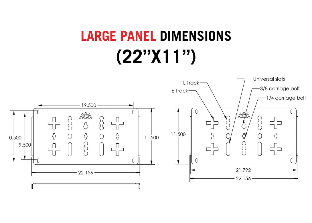 We've incorporated very specific and intentional cutouts in order to accept some of the most widely used universal mounting systems including, L-Track, E-Track, common sized carriage bolts, and more. We have created these mounting points to all be top faced - meaning everything can be fastened and secured from the top. No more reaching under the roof rack crossbars or wedging your hand under the roof rack to mount your gear. Our variety of universal cutouts allows you to attach and detach your gear instantly.