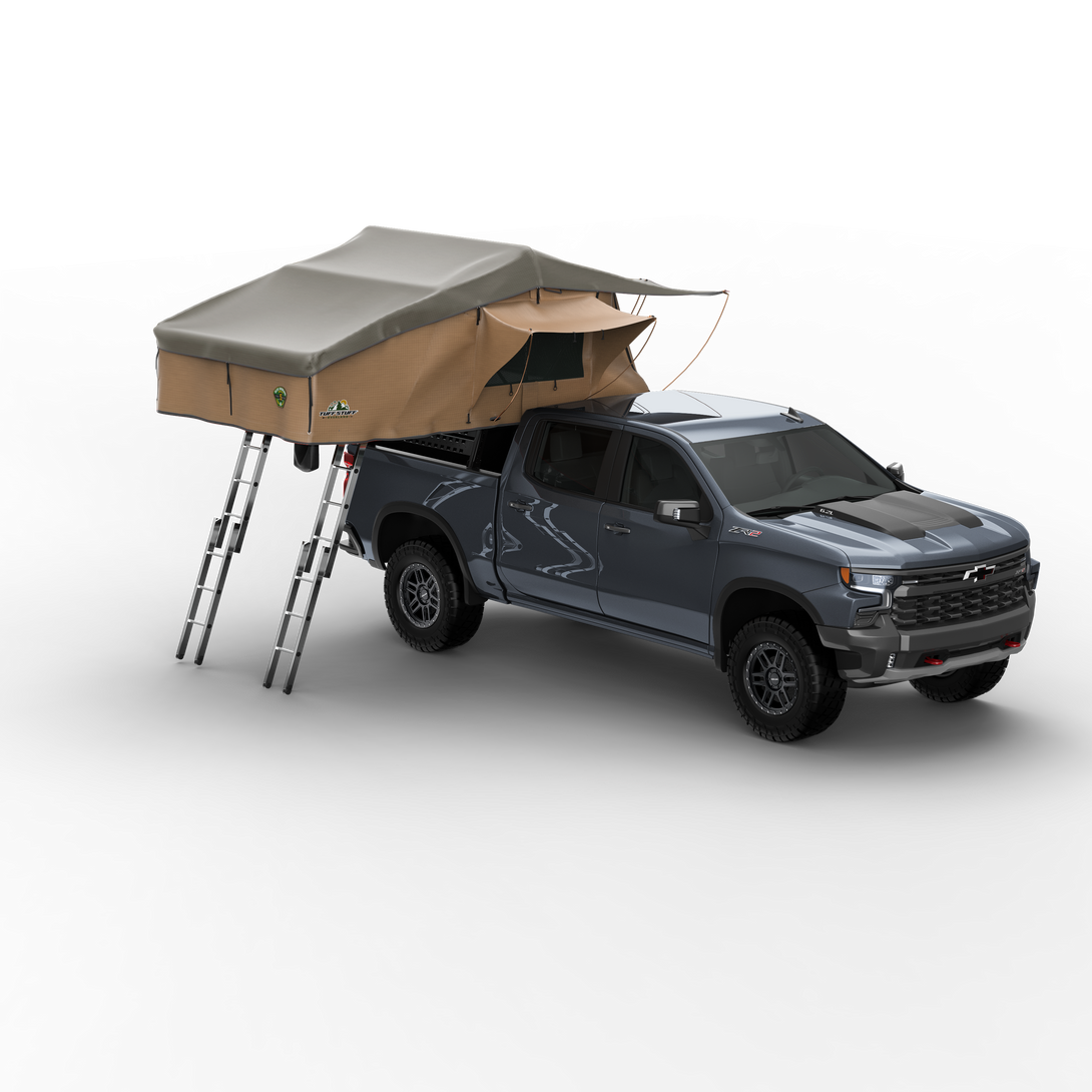 Expedition Tough: All-aluminum frame, ladder, mounts + heavy-duty PVC cover.